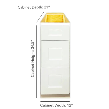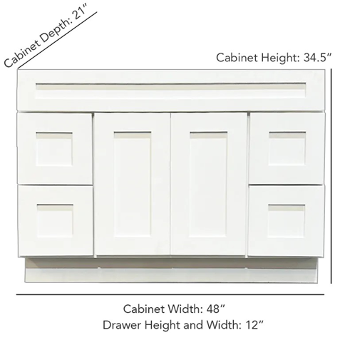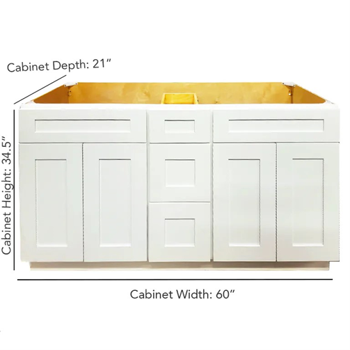 60" x 21" single sink base 12" drawer + 36" sink + 12" drawer |